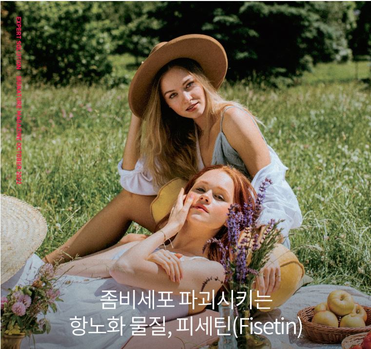 피세틴은 딸기, 사과, 포도 등에서 발견되는 플라보노이드의 일종으로, 강력한 항산화 작용을 합니다. 최근 연구에서는 피세틴의 '세노리틱' 효과, 즉 노화된 세포를 제거하는 능력이 주목받고 있습니다. 피세틴의 주요 효능은 다음과 같습니다.